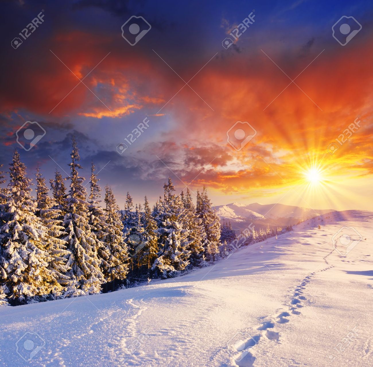 Majestätischen Sonnenuntergang Im Winter Berge Landschaft Lizenzfreie Fotos, Bilder Und Stock Fotografie. Image 10637815.